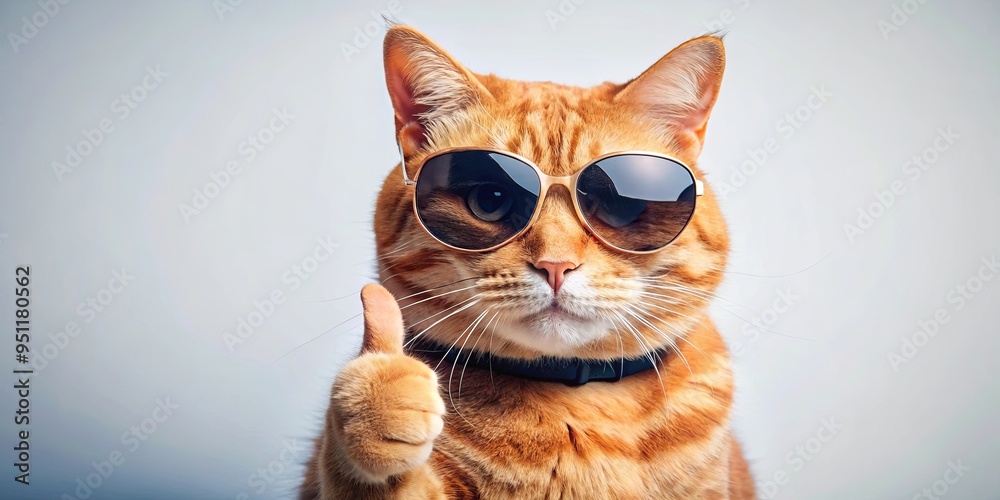 • Cool and confident ginger cat with sunglasses giving a thumbs up