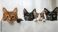Koty - Four curious cats peeking over the edge of a white surface #966120737