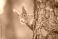 Zwierzęta - Curious red squirrel peeking behind the tree trunk #100287424
