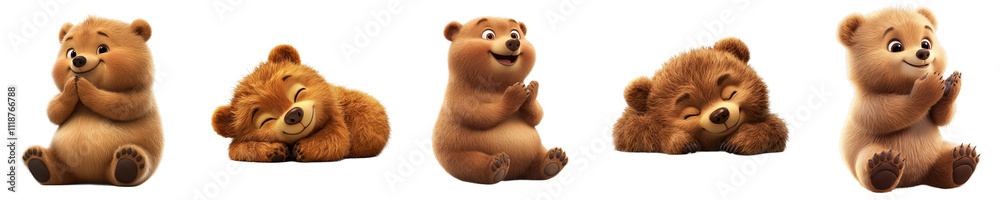 Zwierzęta - cute beer animal character - 3d Set on transparent background PNG file #1118766788