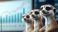 • Three meerkats sitting together with a backdrop of financial graphs, symbolizing teamwork and observation in business.