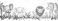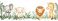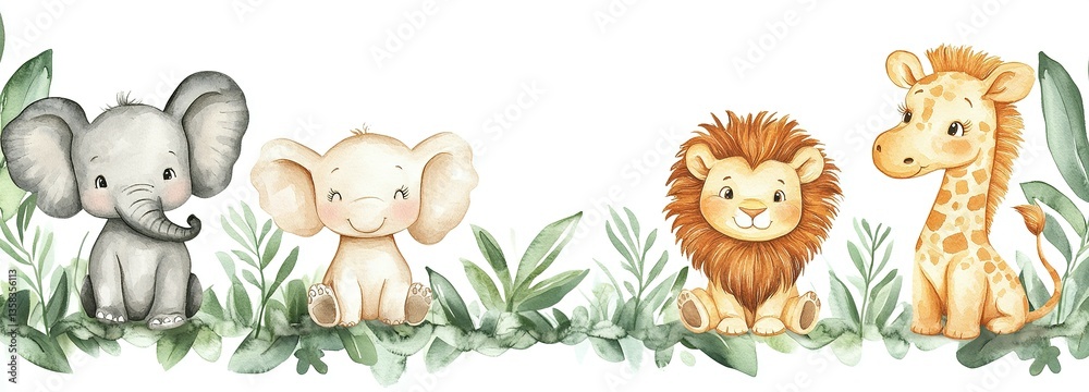• Adorable cartoon illustrations of four safari animals sitting together peacefully