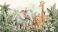 • Watercolor illustration of elephant, lion, giraffe, tiger and other animals in lush tropical foliage, showcasing a serene jungle scene ideal for children's room decor or nature-themed designs