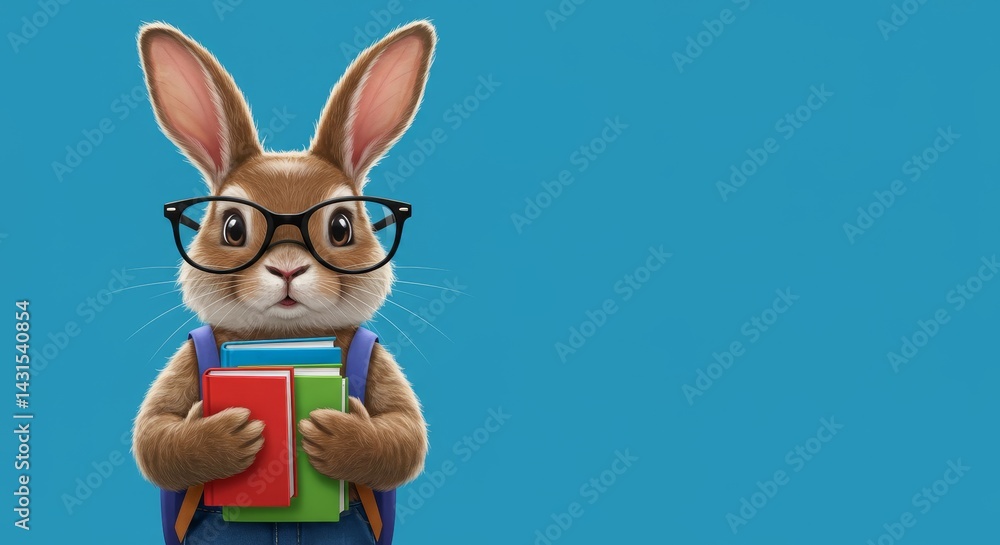 • Studious Bunny with Books - A cute bunny wearing glasses carries books, symbolizing education, knowledge, learning, wisdom, and childhood.