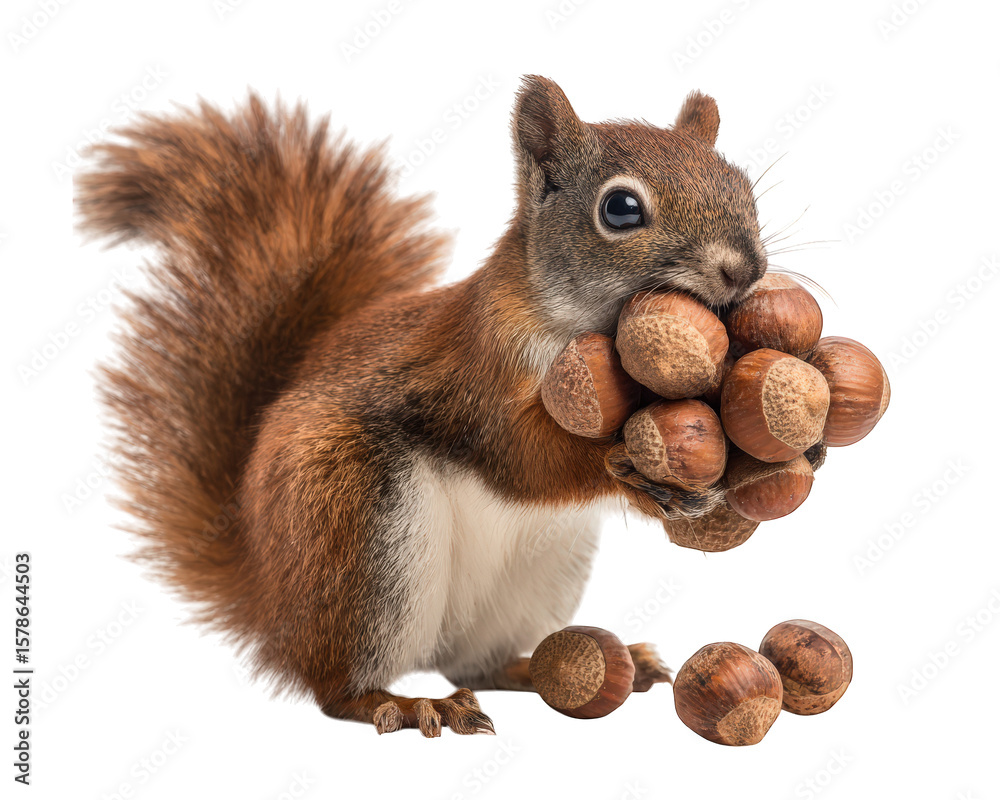 • Squirrel rodent animal nut acorn hoard brown fluffy woodland silly expression isolated transparency background cute mammal autumn forest wildlife bushy tail small whisker alert nature wild snack
