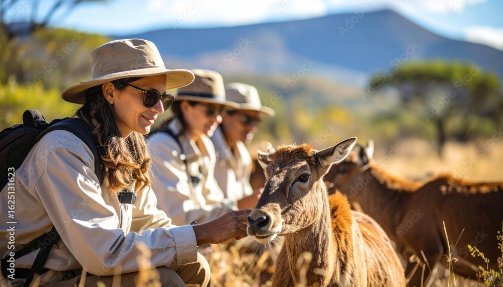 Zwierzęta - Women interacting with animals in nature #1625131623
