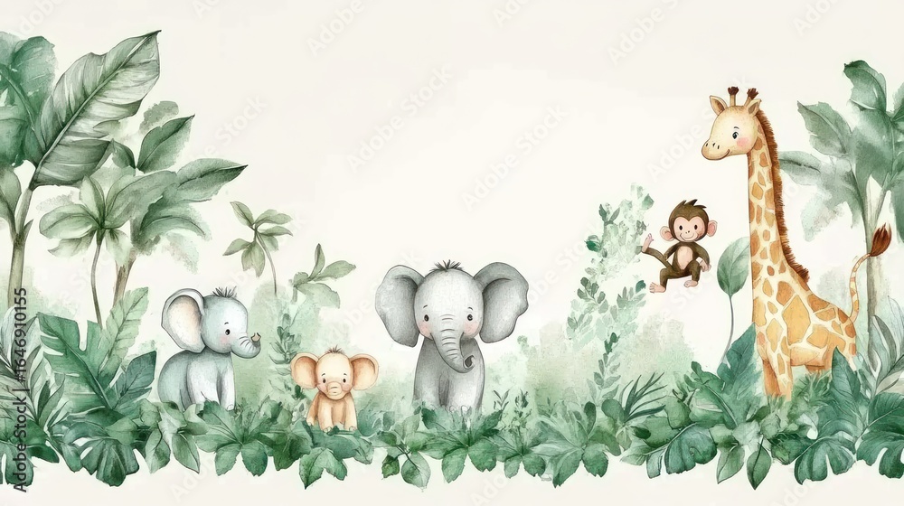 Zwierzęta - Cute jungle animals in a watercolor style #1646910155