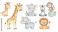 • Adorable Watercolor Illustration of Safari Animals: Two Giraffes, Two Elephants, a Zebra, a Monkey, and a Lion, Perfect for Children's Decor or