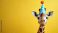 Zwierzęta - Joyful giraffe wears colorful polka dot party hat against vibrant yellow background. Cheerful... #1709914713