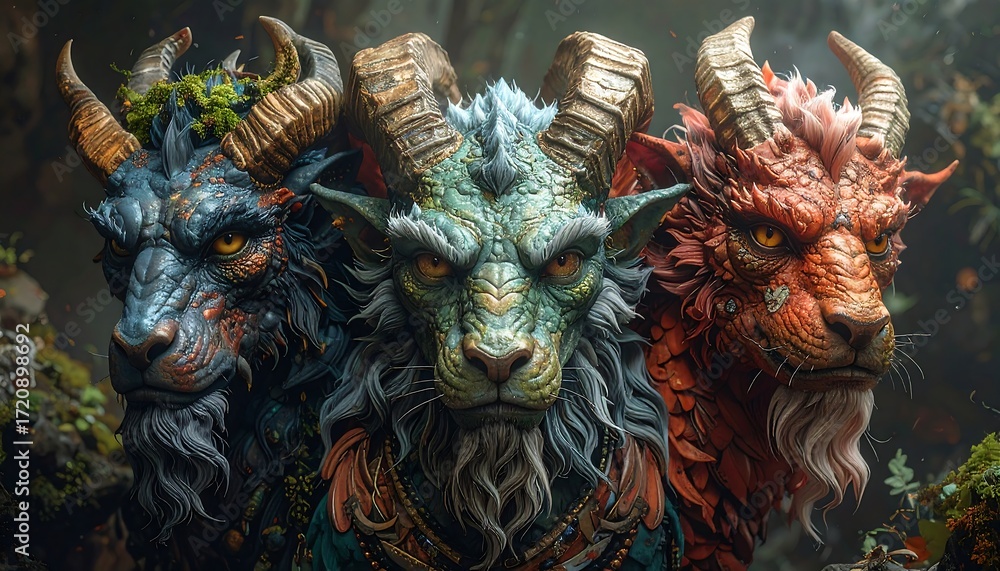 Zwierzęta - Three mythical creatures in a forest #1720898692