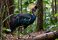 • Vibrant Crested Tropical Bird Walking Gracefully Amidst Lush Greenery and Forested Habitat with Striking Plumage in Natural Environment