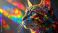 • a magical cat made of stained glass fragments glowing softly with rainbow light