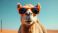 Zwierzęta - Camel wearing orange pixelated sunglasses. Dromedary animal with cool style poses in desert... #1765012231