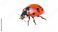 • Close up of a vibrant red ladybug with black spots on a stark on transparent background
