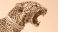Zwierzęta - Close-up of a roaring leopard wearing a stylish silver chain necklace showcasing wild animal... #1805030428