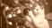 Zwierzęta - White cat playing with red Christmas tree ornament. Holiday pet fun concept. Adorable animal... #1819545706