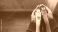 • Hands holding dog paws in animal shelter, showing compassion