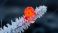 • Vibrant red berry on frosty branch in winter landscape
