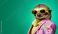 Zwierzęta - Cool looking sloth wearing funky fashion dress - jacket, shirt, glasses. Wide banner with space... #657305496