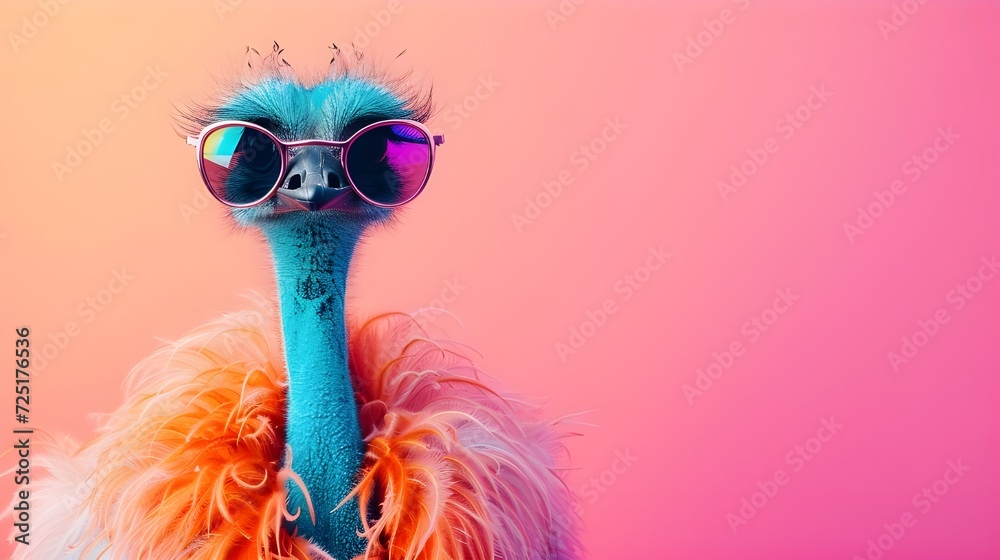 Zwierzęta - Creative animal concept. emu bird,vibrant bright fashionable outfits isolated on solid background... #725176536