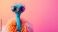 • Creative animal concept. emu bird,vibrant bright fashionable outfits isolated on solid background advertisement with copy space. birthday party invite invitation banner