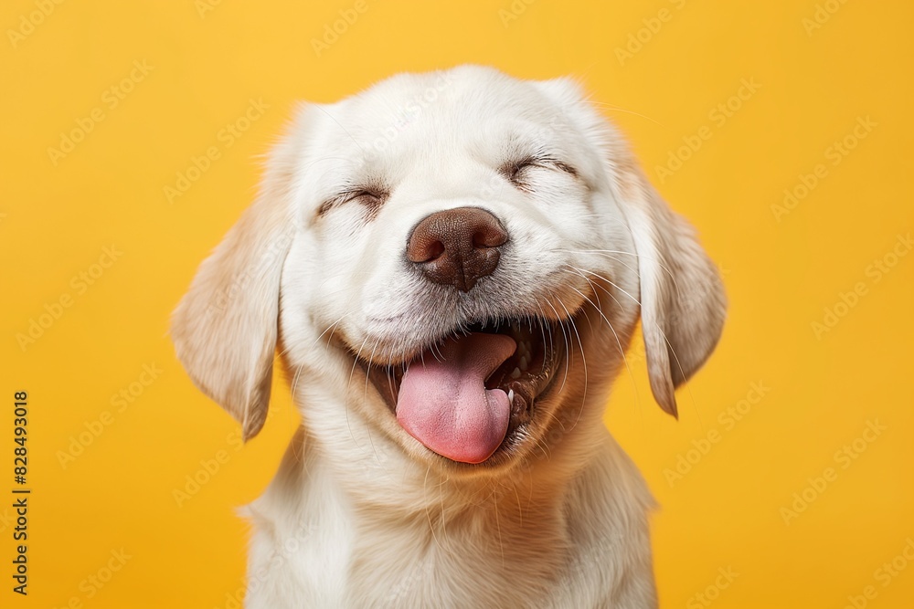 Zwierzęta - In a studio photo, a friendly golden retriever dog is captured pulling a funny face, radiating... #828493018