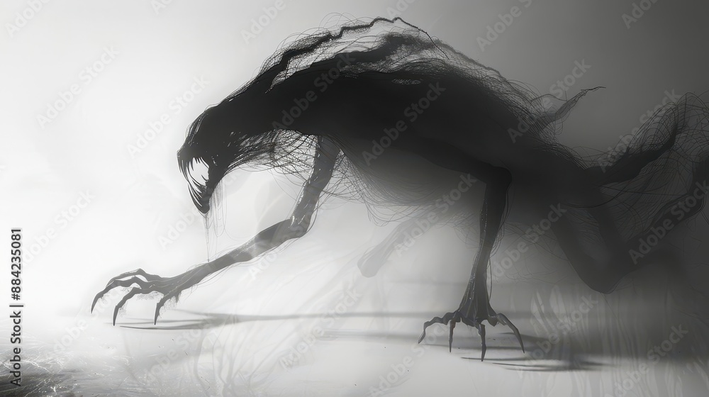 Zwierzęta - A mythical creature emerging from the depths of a crystal-clear lake, in white background #884235081