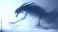 • A mythical creature emerging from the depths of a crystal-clear lake, in white background