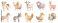 • Farm animals in watercolor illustration set. Cute icons collection of featuring various domestic farm livestock isolated on transparent background.
