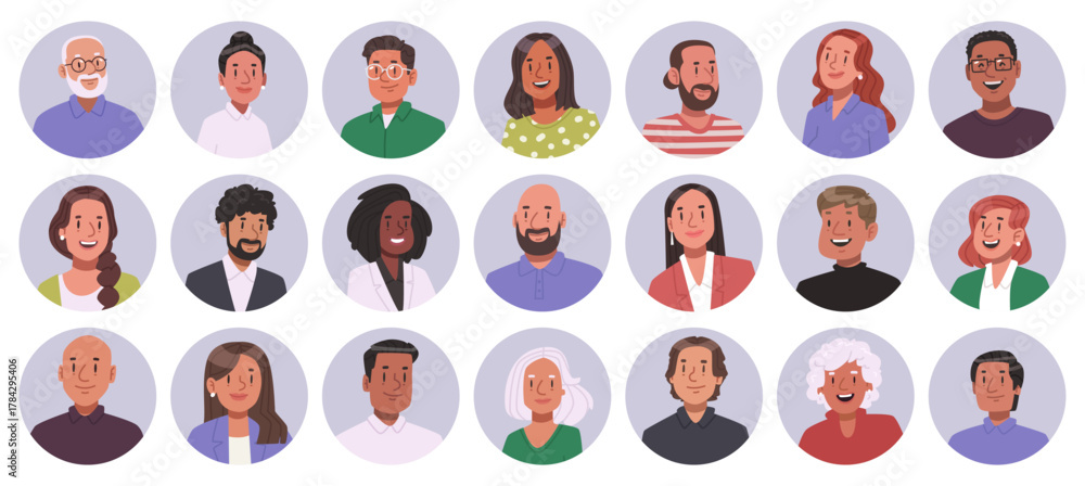 Ludzie - Set of business avatars a men and women. Portraits of business people in a circle. Vector... #1784295406
