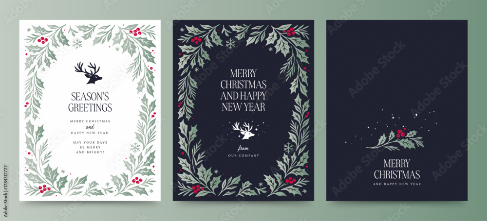 Ludzie - Merry Christmas Flyer Poster Template for Season's Greetings, with Classic Festive Christmas... #1784312727