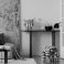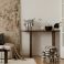 • Stylish interior with abstract patterns, earthy tones, and sculptural furniture in a contemporary setting.