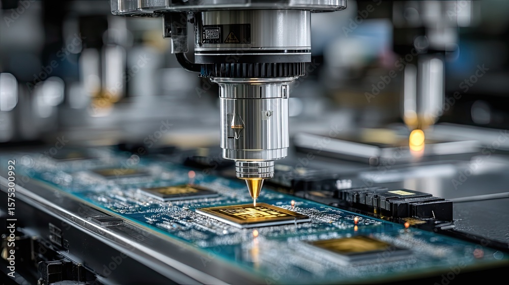 • Silicon etching lab machine with detailed equipment view, semiconductor manufacturing technology concept for industry ads