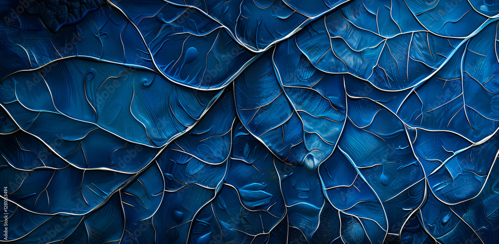 • Abstrakcyjna tekstura niebieskich liści z wyraźnym detalem.