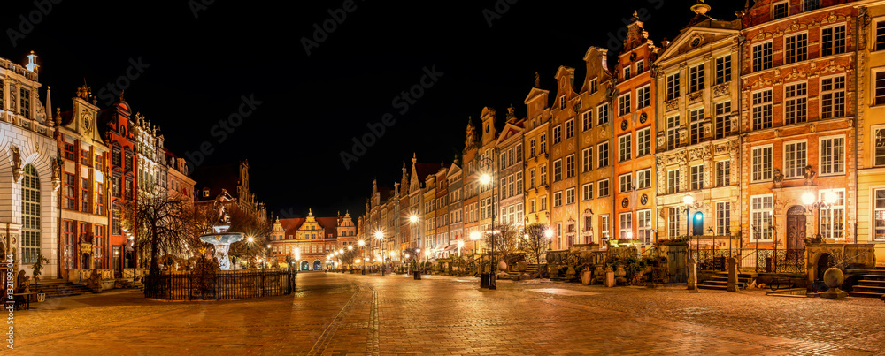 Naklejka Architektura - Długa w Gdańsku nocą #1321993044