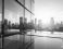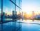 • Nowoczesny szklany biurowiec z widokiem na panoramę miasta - tło biznesowe