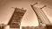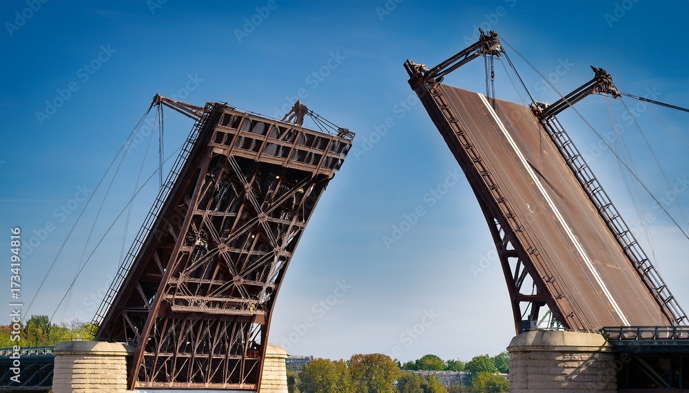 • detailed view of a vintage style bascule bridge against an empty backdrop