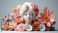 Ilustracja grafika kolorowe owce w bajkowym świecie na pagórkach z bajowymi roślinami.