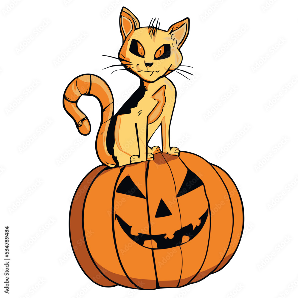Naklejka Bajki - Halloween zombie cat and pumpkin #534789484