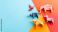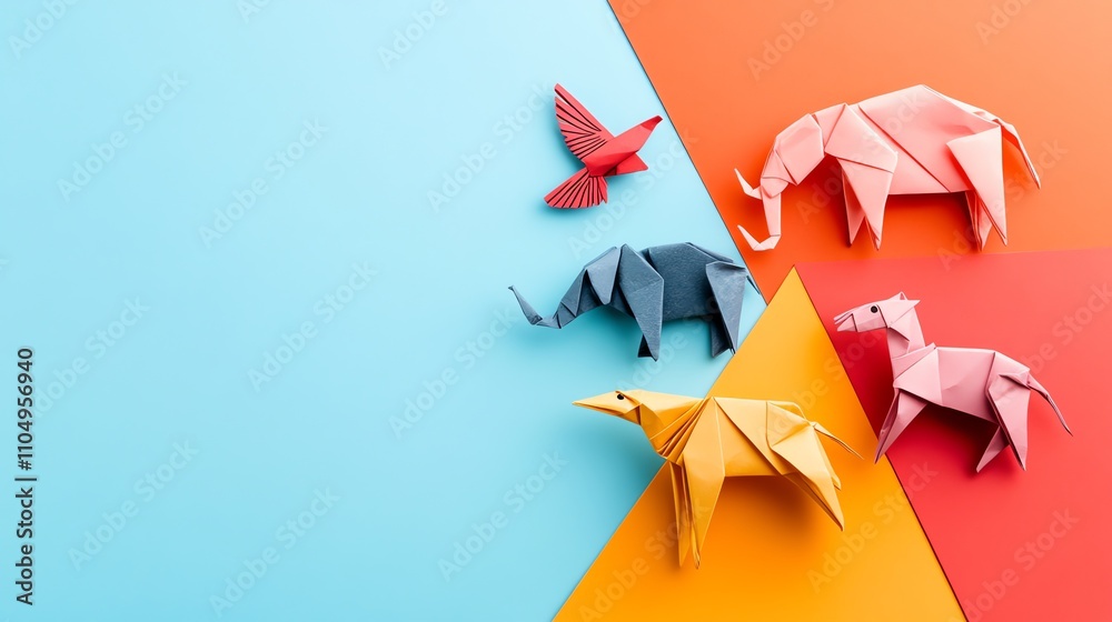 Naklejka Origami - Colorful origami animals on a blue and orange background. #1104956940