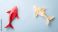 Naklejka Origami - Delicate origami koi fish in red and gold on soft blue background #1129910119