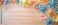 • Colorful origami flowers in orange blue and yellow arranged on a light wooden desk creating a vibrant and artistic flat lay composition