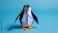 • a charming origami penguin adding a playful touch to a serene blue backdrop