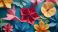 Naklejka Origami - Colorful origami flowers and birds design #1436853394