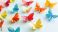 • Colorful origami butterflies on light blue background