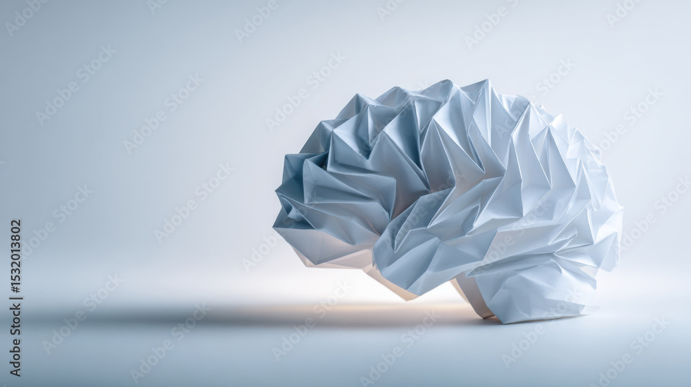 • Brain made of origami paper unfolding into light, concept of mental clarity and mindfulness