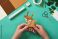 Naklejka Origami - Hands holding a finished paper deer craft. Scissors, tape, glue, and colored paper. #1574078446