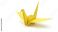 • A yellow origami paper crane sits on a white surface with a soft shadow