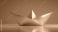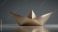 • Elegant gold origami boat sculpture displayed on a reflective surface with soft dramatic lighting and a minimalist background