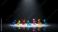 • Colorful origami animal lineup under dramatic studio spotlight with reflections.